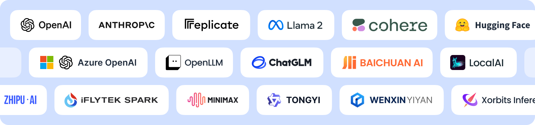 Supported LLMs Rich Variety Only GPT Rich Variety